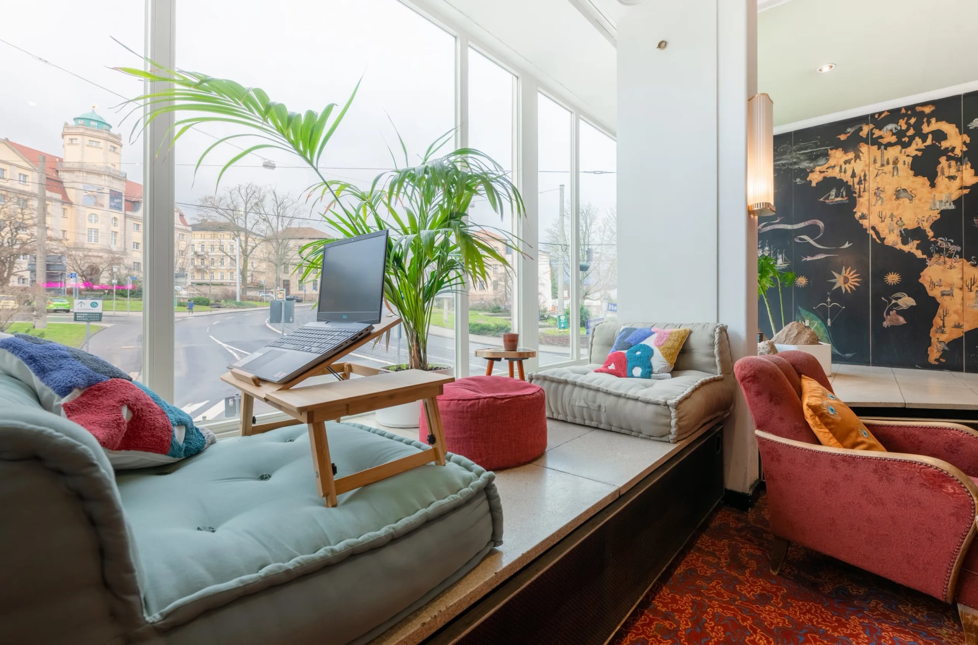 In unserem Community-Bereich könnt Ihr es Euch mit einem Buch, einem Cappuccino und Blick über den Brüder-Grimm-Platz gemütlich machen oder gemeinsam eine Spielrunde starten.